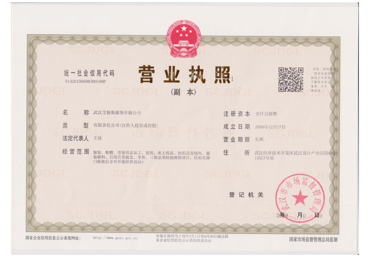 武漢艾格斯服飾有限公司成立于2009年12月注冊資本人民幣:壹仟萬元整,是一家專業設計、制作、銷售各類職業裝、特種工作服及紡織用品的公司,是華中地區專業團體職業裝生產基地之一,公司薈萃了服裝紡織行業的各種專業人才,具有較強的設計,開發生產能力。艾格斯服飾作為制服行業的品牌企業,伊始就站在較高的起點上,公司先后通過了GB/T 19001-2016/ ISO9001: 2015 質量管理體系認證、 GB/T 45001-2020/ ISO45001:2018職業健康安全管理體系認證、GB/T 24001-2016/ ISO14001:2015環境管理體系認證.   經營理念:艾格斯服飾倡導實用,美觀和物有所值的經營理念,在實用主義中盡現青春的價值。 艾格斯服飾將以“豐富服飾文化,展示企業風采”的企業宗旨,秉承全面創新,全員務實的企業文化,努力將“艾格斯服飾”品牌延伸至社會,為廣大的合作伙伴提供更完善的服務。   生產規模和人力配置:公司于2010年1月在湖北襄陽市樊城區后賈洼榮耀工業園內成立襄陽艾格斯制衣有限公司,投資260萬引進現代服裝生產線12條,擁有精良服裝生產設備130多臺(套)、職工150多人,其中技術人員23人,實現日產服裝500套(1000件)年生產服裝30萬套,艾格斯服飾力求在每一個生產環節都以嚴格的質量控制標準把我們把優良的產品提供給廣大合作伙伴。   主營渠道:主要致力于各企事業單位、水,電、氣等能源系統,機械制造、化工、航天、物流等大型企業團體制服定制。